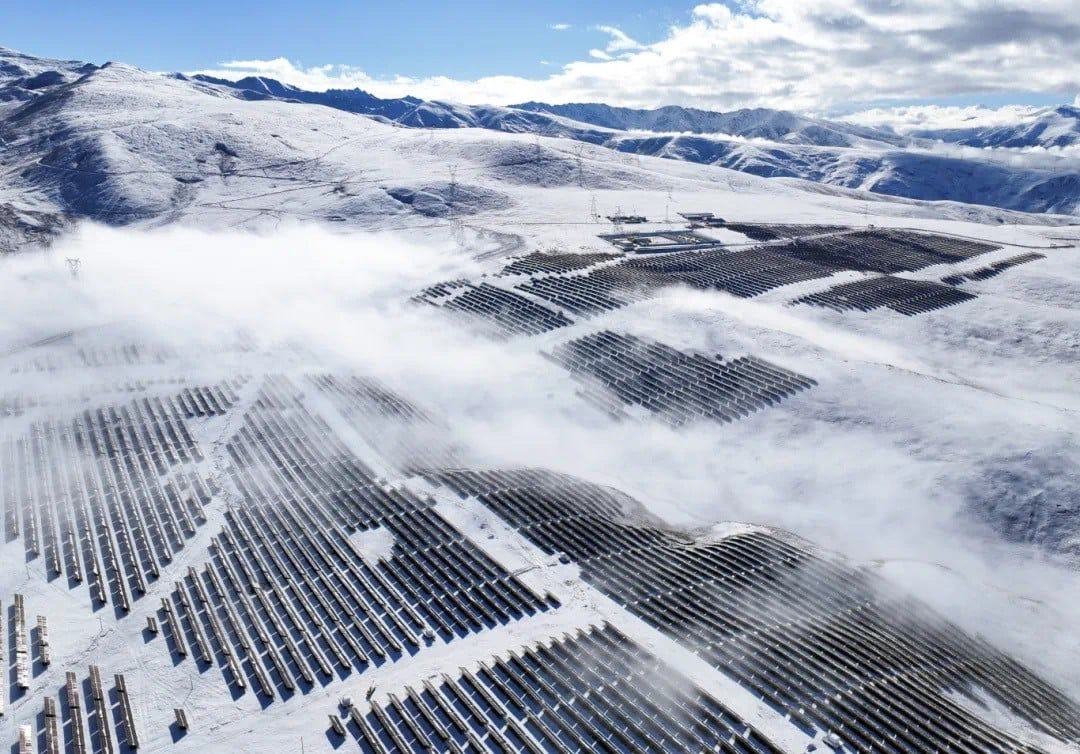 China is constructing the world’s largest solar farm on the Tibetan Plateau, spanning 610 square kilometers, an area roughly the size of Chicago or seven times larger than Manhattan. The Talatan Solar Park in Gonghe County, Qinghai province, will house over 7 million solar panels when completed, generating enough electricity to power 5 million households. Positioned nearly 10,000 feet above sea level, the facility capitalizes on the plateau’s thin atmosphere, which allows significantly more intense solar radiation to reach the panels, enhancing energy production efficiency.